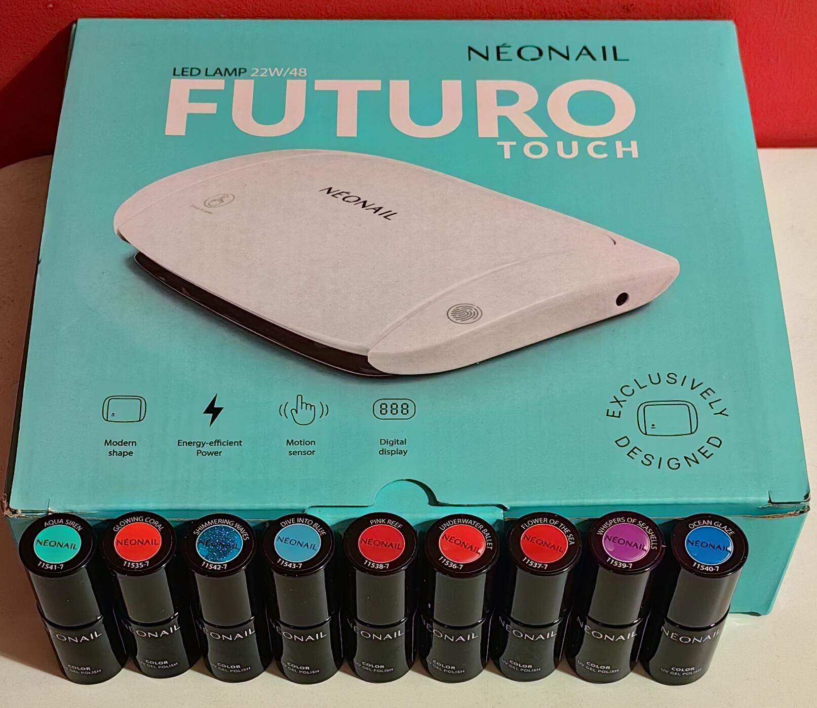 9 lakierów hybrydowych z kolekcji Skarby Morza marki NEONAIL oraz Lampa LED FUTURO TOUCH 22w/48