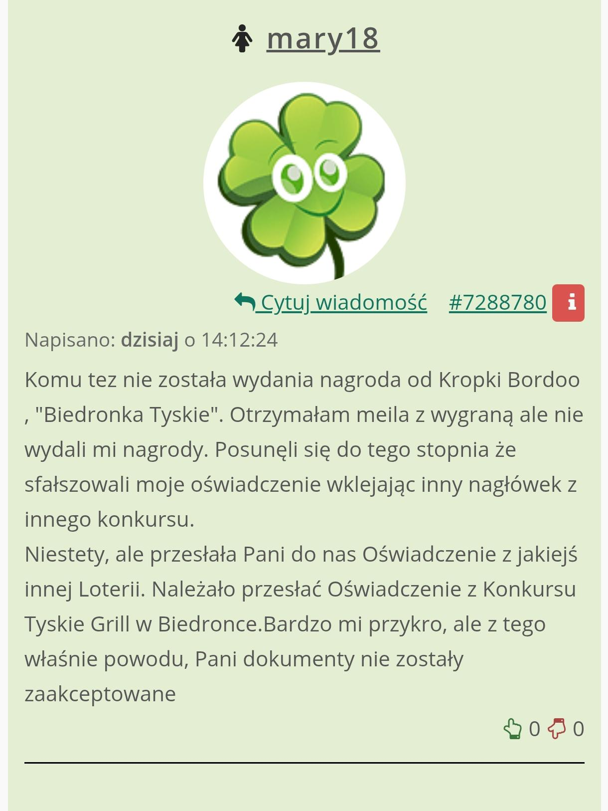 W innym wątku dzisiejszy wpis... Jeżeli Kropka Bordo posuwa się nawet do fałszowanie oświadczeń to już jest grubo 🤨 Ja przestałam u nich w tym roku grać po przeczytaniu różnych wpisów na forum. Wyświetl w wątku >>