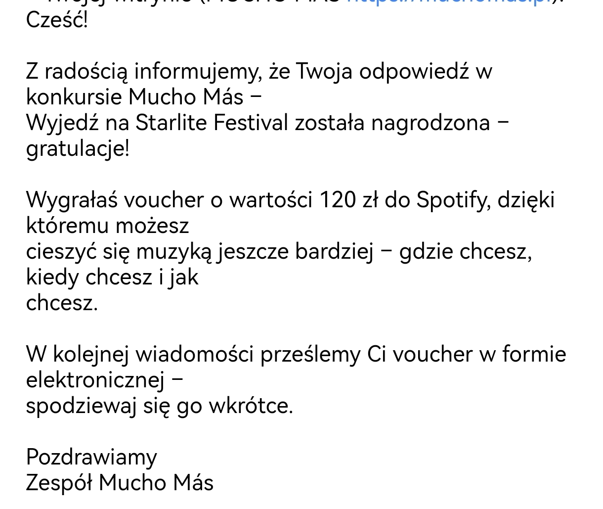Voucher 120 zł do Spotify z Mucho Mas 😉 Wyświetl w wątku >>