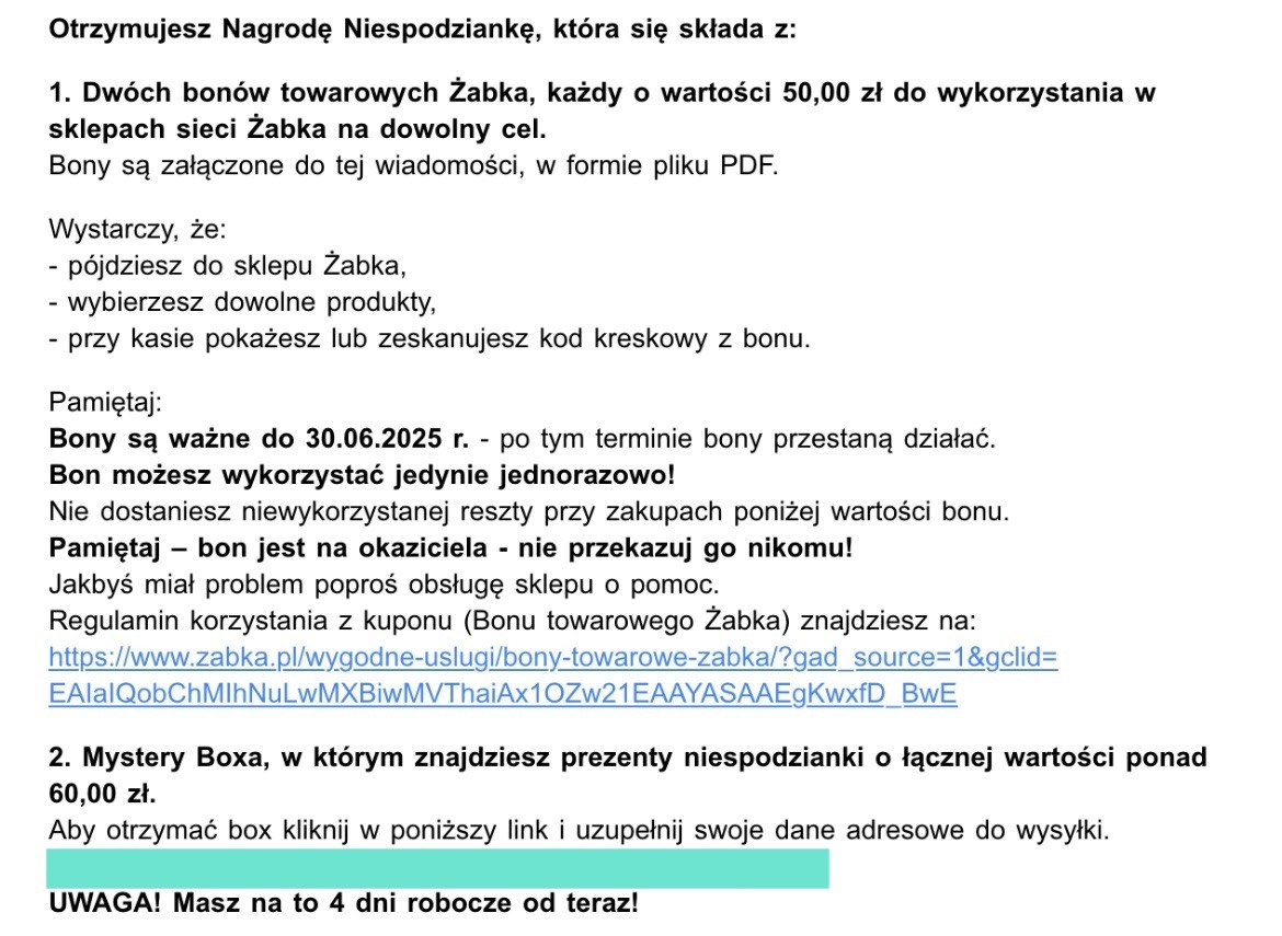 @lolo499]Twix ale email jest jakby ucięty czy trzeba potwierdzić paragonem jakoś wygraną? Czy nic nie trzeba robić. Wyświetl w wątku >>