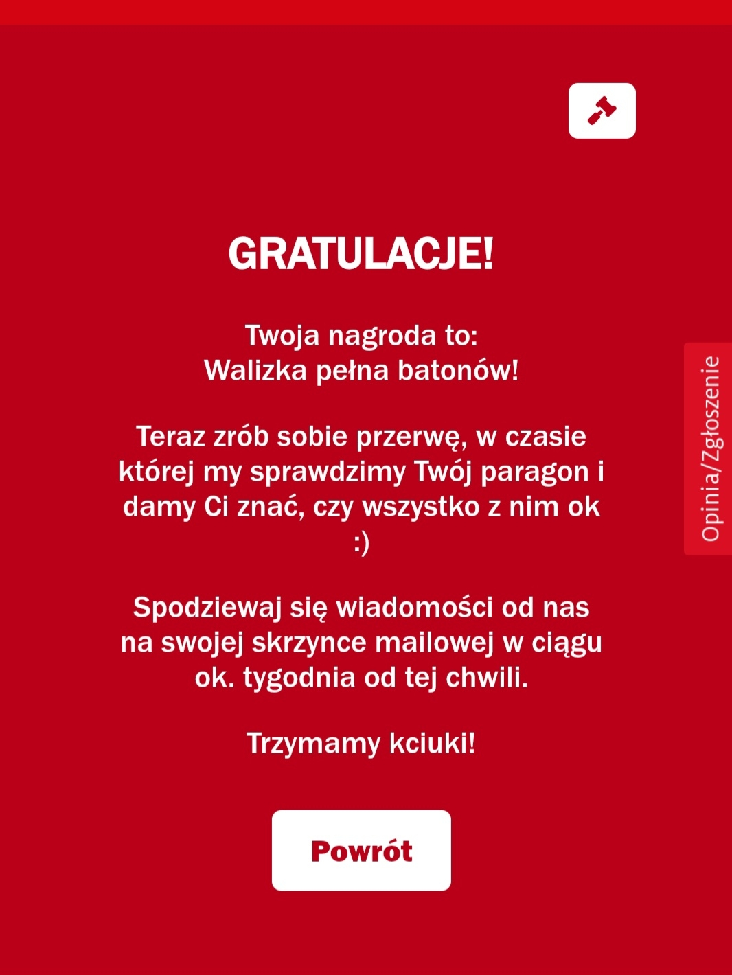 - Dwie walizki Kit Kat z dostawą od Organizatora (do 9 maja decyzja) bądź wymienię na bony do biedronki