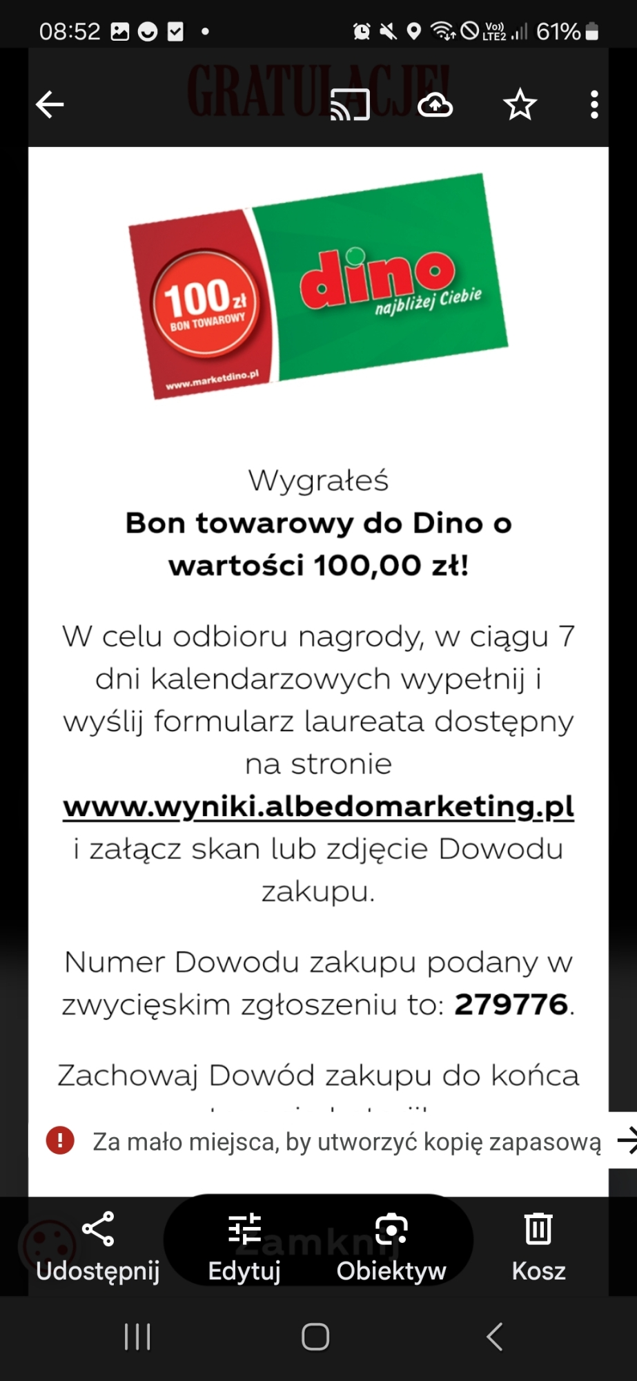 Czy zdarzyło się wam ze kupiliście produkt tańszy o np 1 zl niż wymagał konkurs i Smolar uznał paragon? Wyświetl w wątku >>