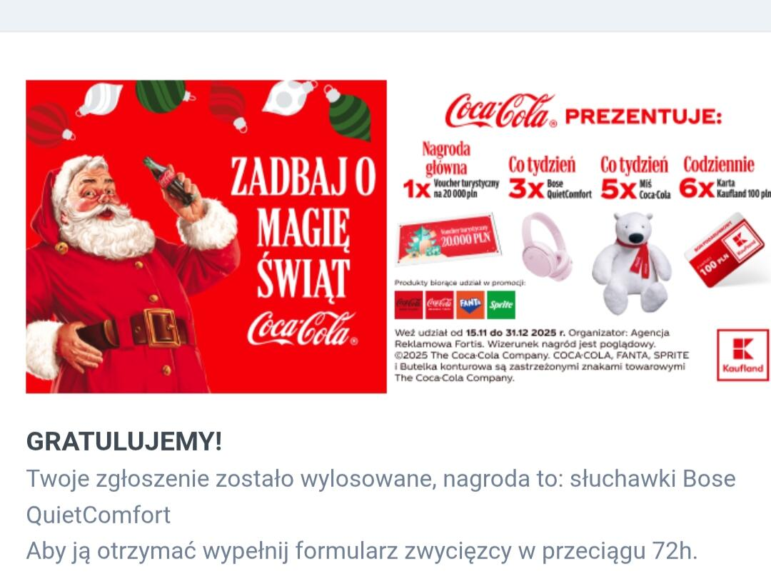 Nie wiem jak wy wygrywacie w tych loteriach. Przy tej coca coli jest licznik zgłoszeń i jak odświeżam to czasem wpadają 3 zgłoszenia w ciągu minuty i to o 10 kiedy niby większość ludzi jest w pracy. Wstrzelić się w bramkę, to trzeba być w czepku urodzonym.