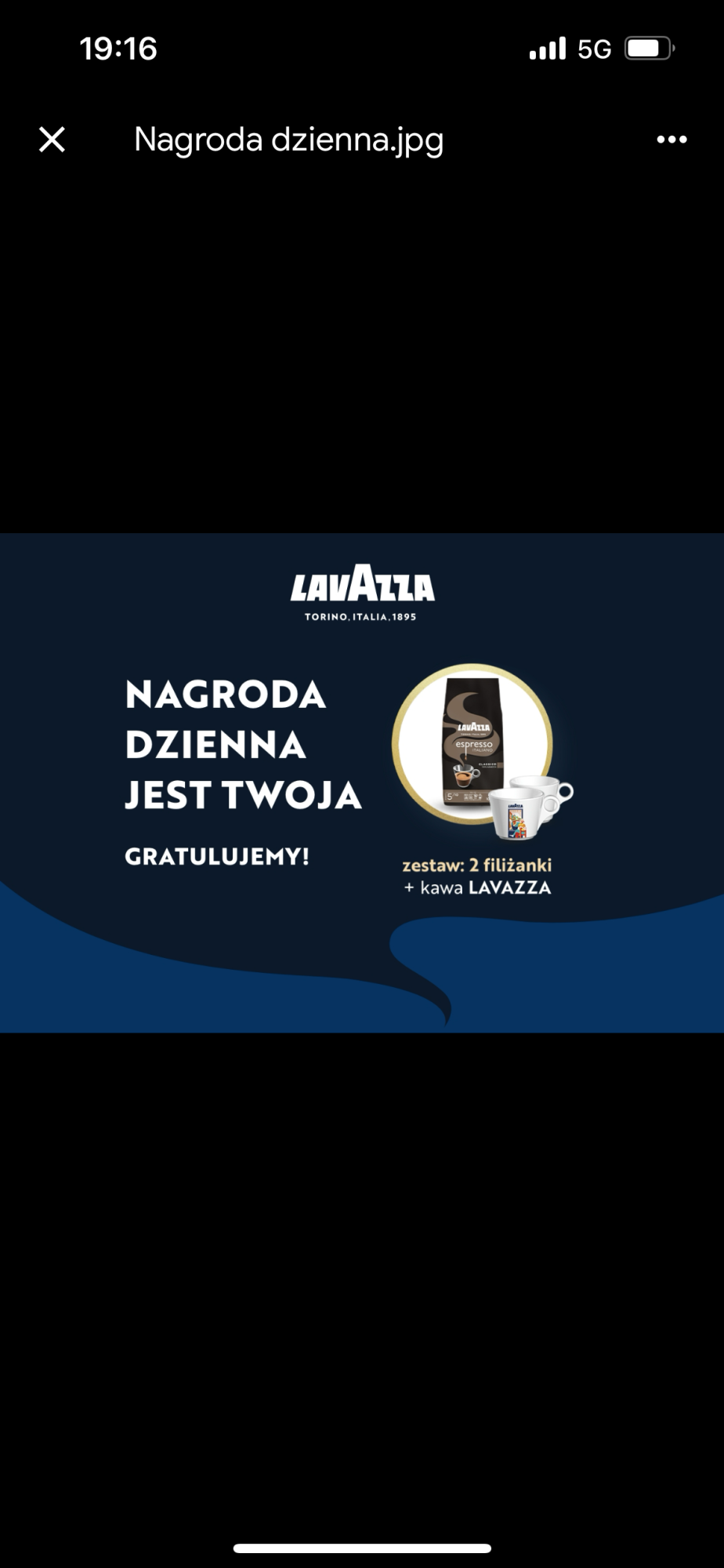 Nagroda dzienna z 130 lat z Lavazzą, ekspresowa wysyłka, w piątek wygrana, a dzisiaj nagroda już mnie Wyświetl w wątku >>