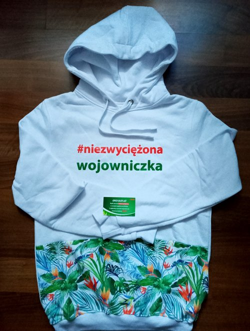 "Dzień dobry, bardzo dziękujemy za cierpliwość. Bluza powinna być u Pani maksymalnie w przyszłym tygodniu. Przepraszamy za opóźnienia. Pozdrawiamy."