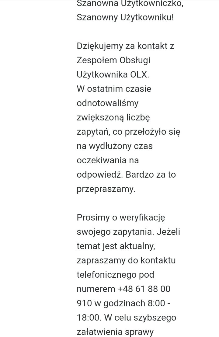 ja z przesyłkami olx mialam taki problem że paczka była odebrana a u nich nadal tkwiła że nieodebrana, dopiero mniej więcej po półtora dnia zmieniał się status i mniej więcej w tym samym dniu dostawałam przelew z jakiegoś zagranicznego konta. Myślę że nad tym po prostu nie panują. Paczki za złotówkę to się ludzie rzucili i właśnie są efekty... Wyświetl w wątku >>