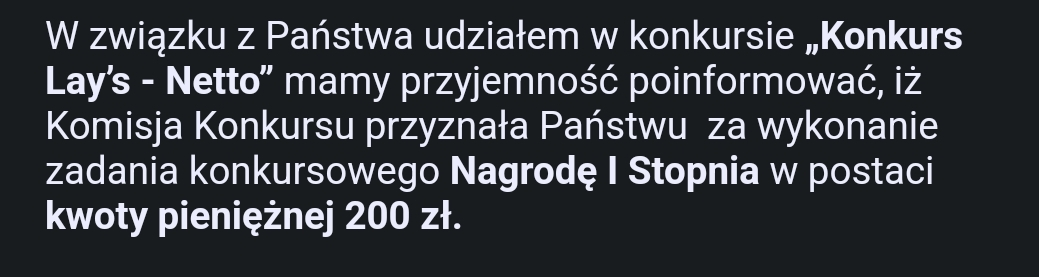 montezuma napisał(a):Cześć 🙂Za jaki ostatni dzień pojawiły się wyniki Lay's w netto? Nie znalazłem info w MDW emotka