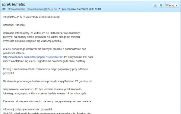 jakby co! Strona to fedex.com.pl przez jedno E.... a nie dwa, coś tam wychodzi ale czuję że to spam, każą wysłać sobie smsy... Wyświetl w wątku >>