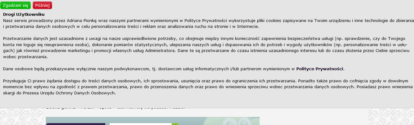 Nasz serwis prowadzony przez Adriana Pionkę wraz naszymi partnerami wymienionymi w Polityce