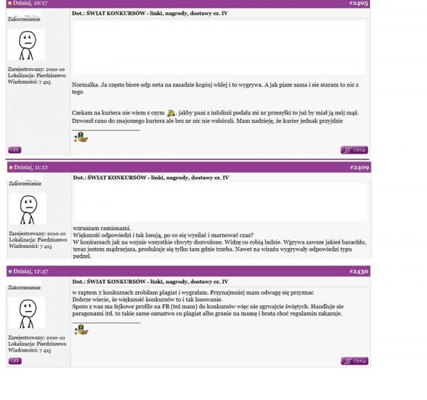 Mnie porażka w Kaufie nie pogrążyła wcale, bo nie liczyłam na wygraną (tylko kilka zgłoszonek) Byłam natomiast przekonana, że kto jak kto, ale Kauf nie poleci na cwane,niezgodne z regulaminem zagrywki i nadal tak myślę, ale żeby oczyścić gęstą atmosferę niepewności można to sprawdzić- tym bardziej, że każdy kto wziął udział w tym konkursie ma takie prawo
