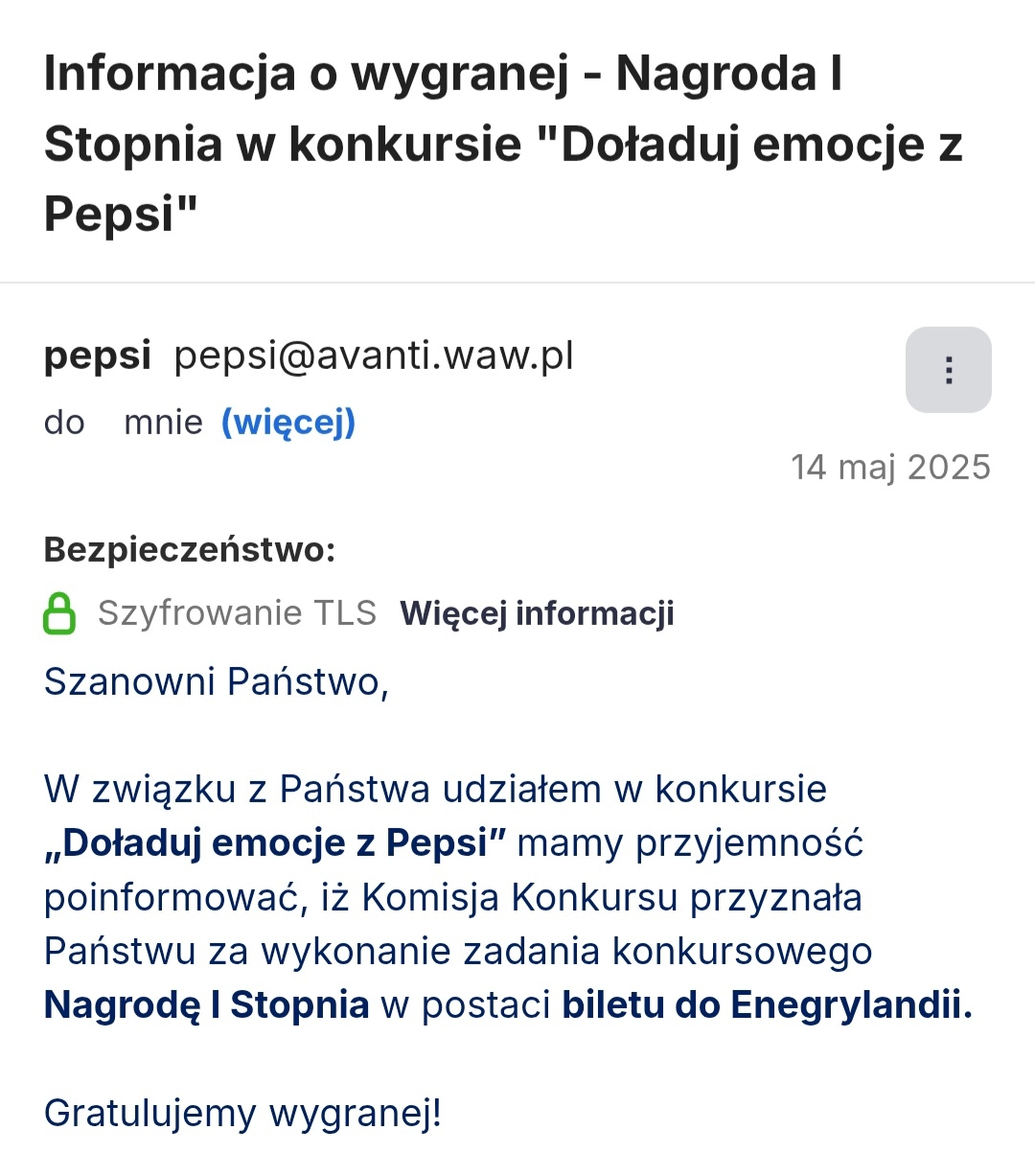 Info o nagrodzie e mailem Wyświetl w wątku >>