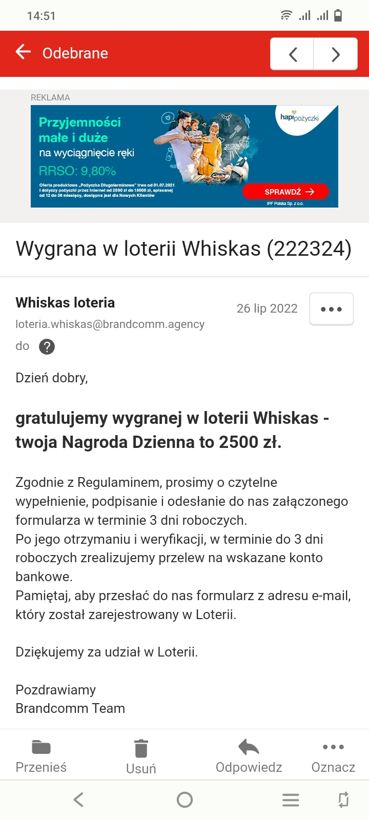 mam pytanko - wygrałam voucher Player w konkursie Kinley. W formularzu zwycięzcy nie było miejsca na wstawienie zdjęcia paragonu, natomiast w regulaminie jest informacja, że takie zdjęcie powinno zostać dodane do formularza. Czy ktoś też miał taką sytuację?
