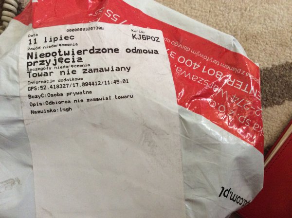 -z adnotacji na paczce wynika że "odbiorca nie zamawiał towaru, odmówił przyjęcia"