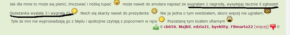 - na moje posty: można wrzucić link do: / dyskusje o innych konkursach/ Smolar/ Pomocy!!!/ ETC...