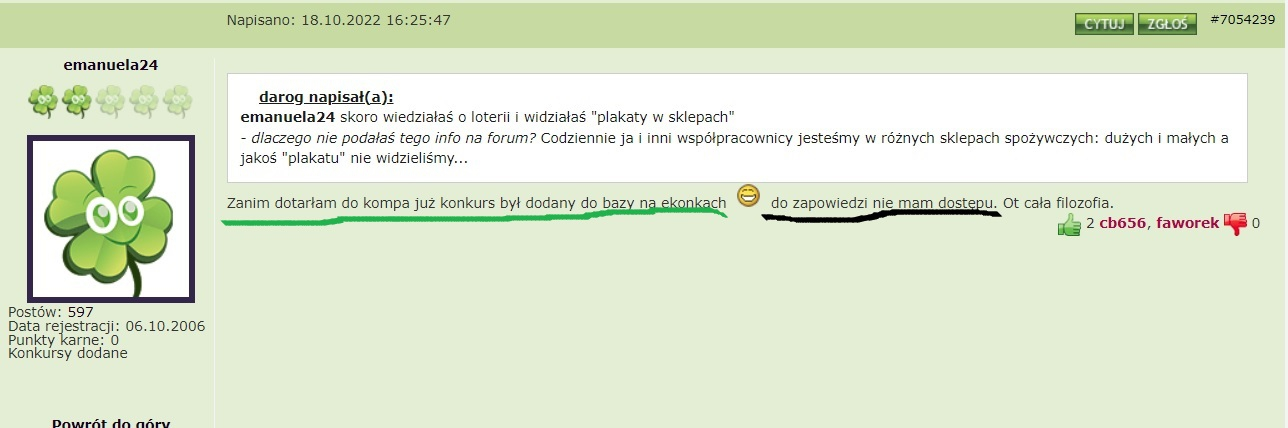 - piszesz że "do zapowiedzi" nie masz dostępu - czyli widziałaś plakaty przed 17.10.2022.../ uważasz że nie można dodać do bazy PRZED rozpoczeciem konkursu/loterii?