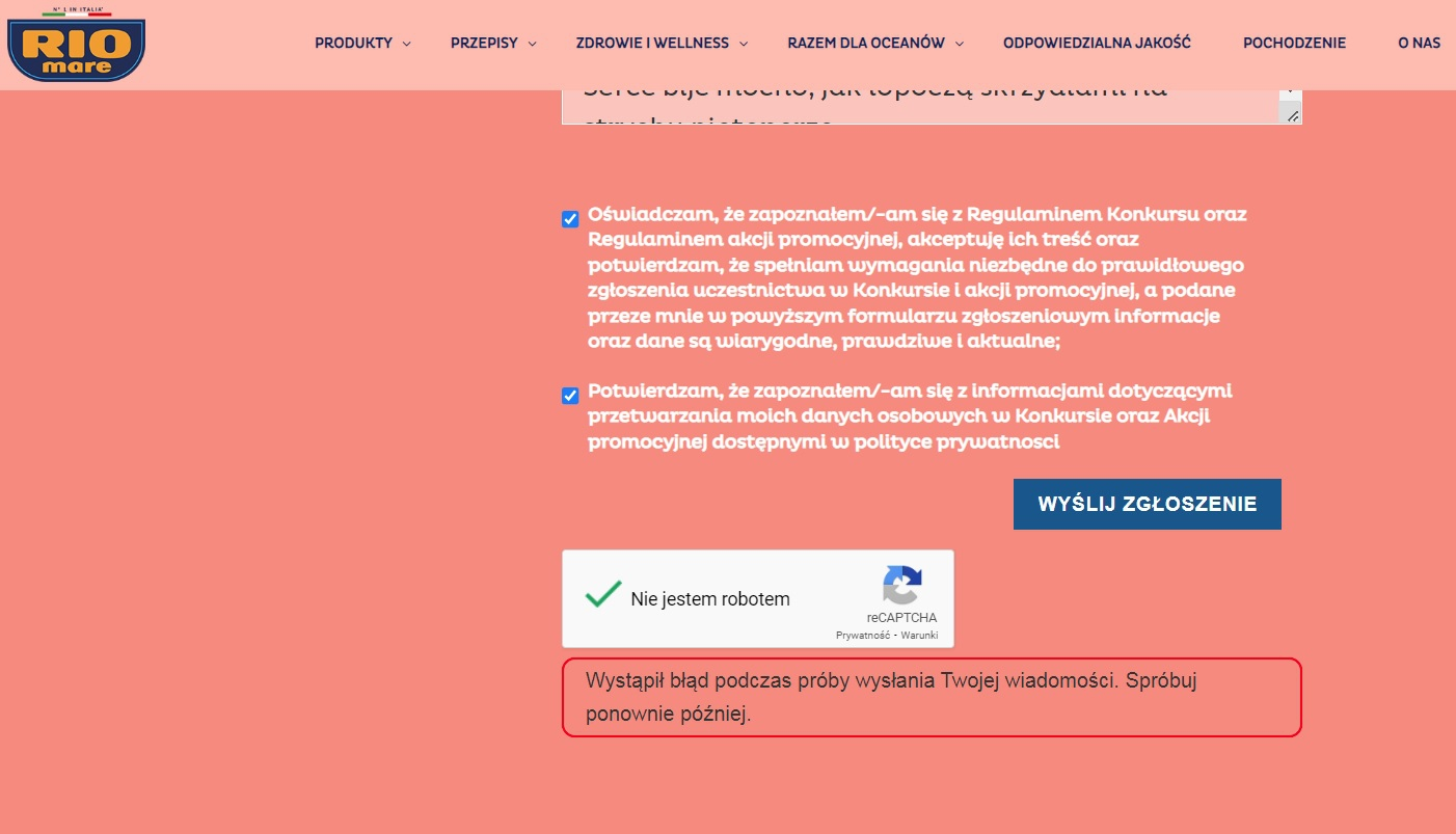 na wszystkie sposoby, z róznych przeglądarek, z różnych komputerów i nie dało się wysłać Rio Mare.
