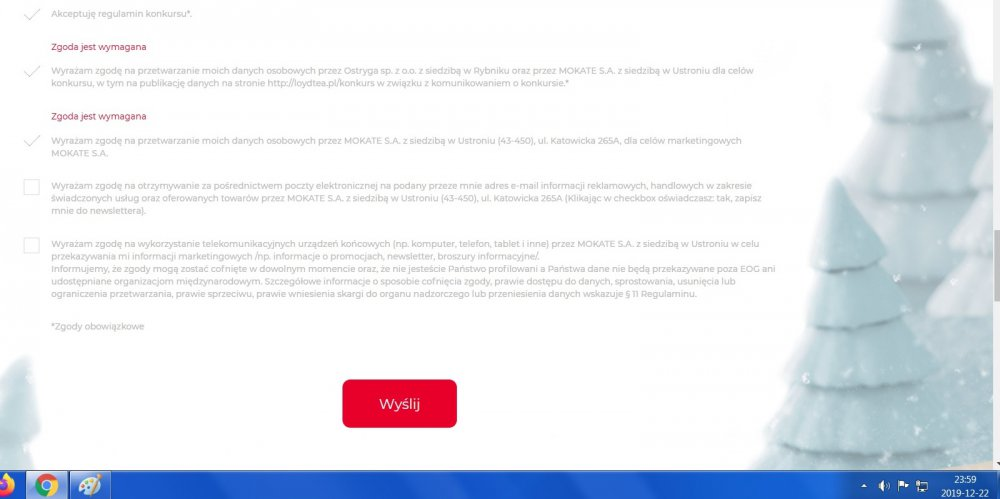 LOYD tyle razy dziś próbowaliśmy i formularz nie przechodził. Zgody zaznaczone a tu komunikat na czerwono": zgody wymagane.