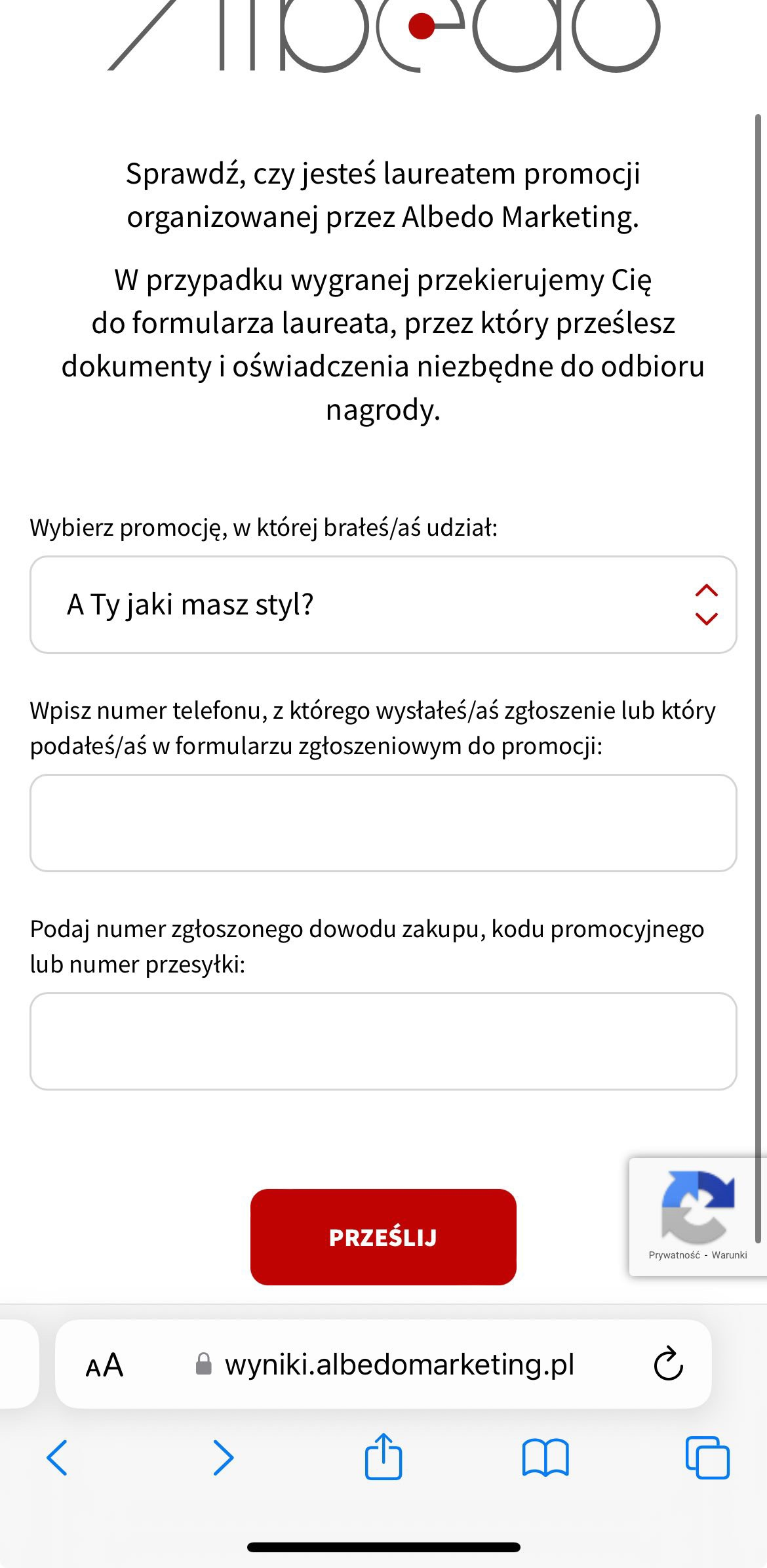 Loteria Biedronka dane uzupełniało się przez formularz który wysyłali na e-mail.