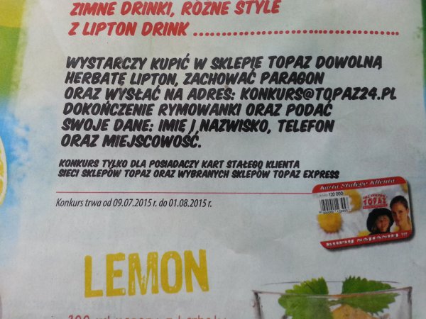 Dowolne paragony z Żabki wymienię na TOPAZ- Lipton