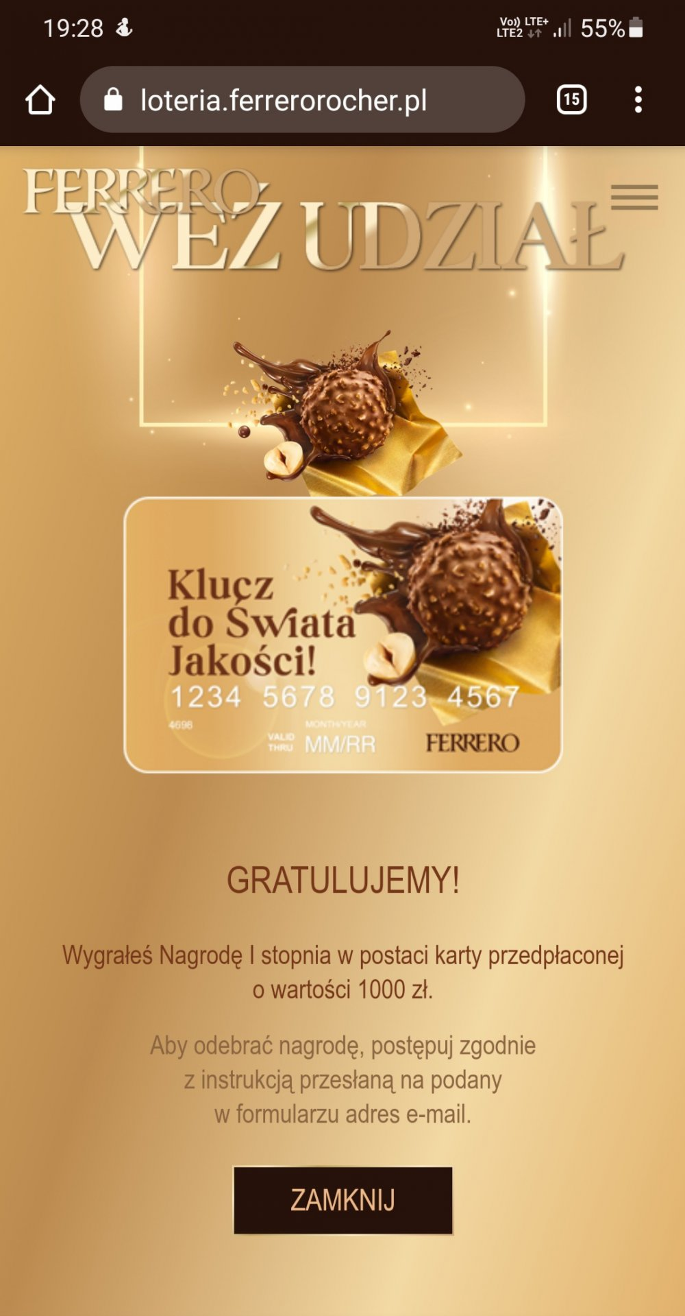NESTLE: Gratulacje! Zostales laureatem nagrody instant win w postaci bonu Intermarche o wartosci 50 zl w Loterii: SMSy slij do Nestle, bo nagrody ma najlepsze!