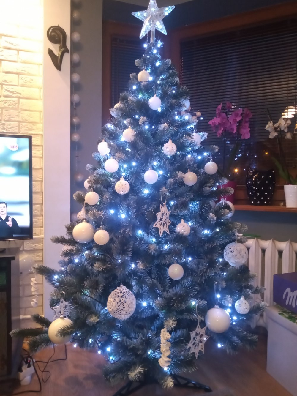 Gwiazda i kilka bombek na szydełku z domowej ,,kolekcji"