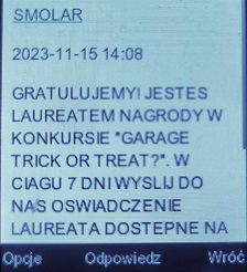 Nic nie pomyliłam. Mam jeszcze tego sms i jest ,,Wygrywasz nagrodę I stopnia w konkursie"... tak, jak napisałamemotka