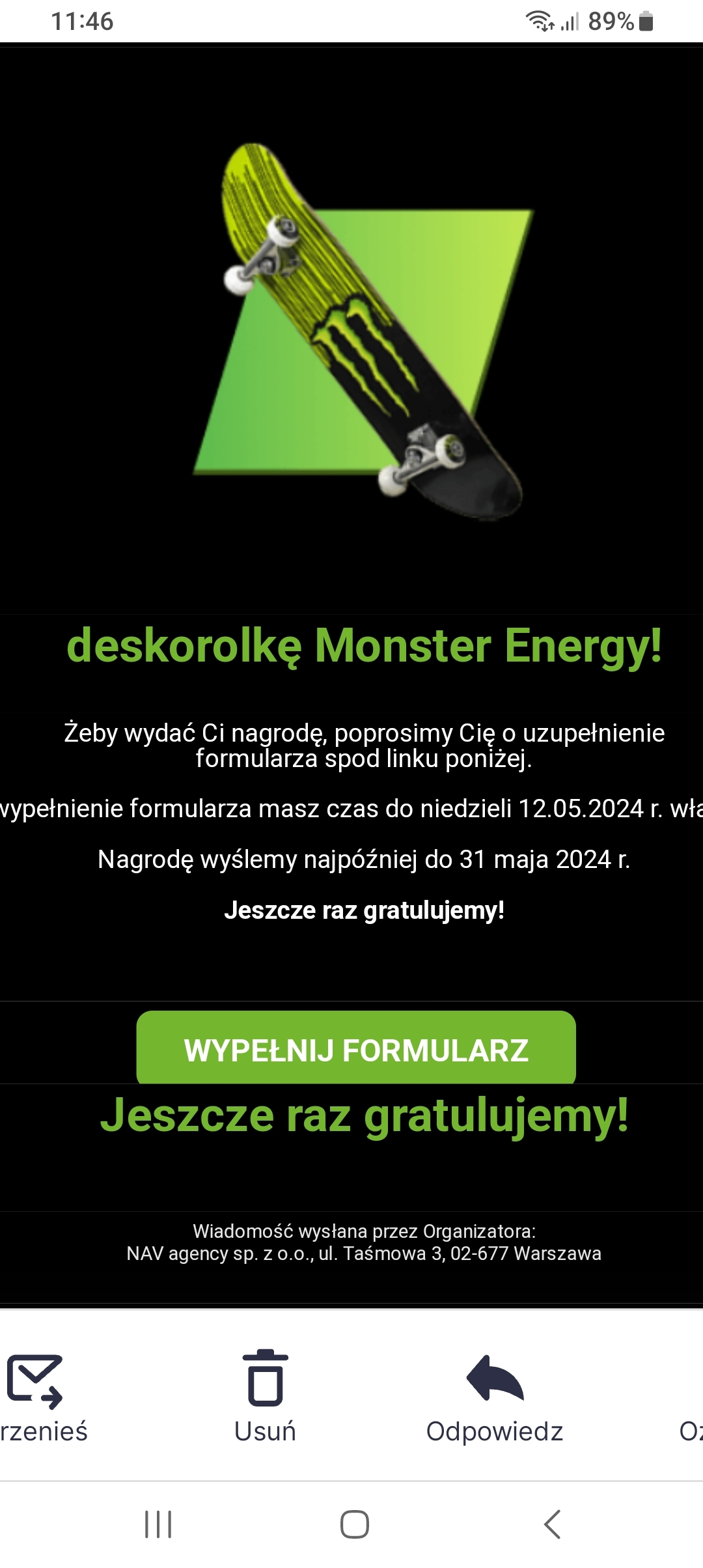 sprzeciwu wobec przetwarzania danych osobowych. Posiadasz prawo wniesienia skargi do Prezesa Urzędu