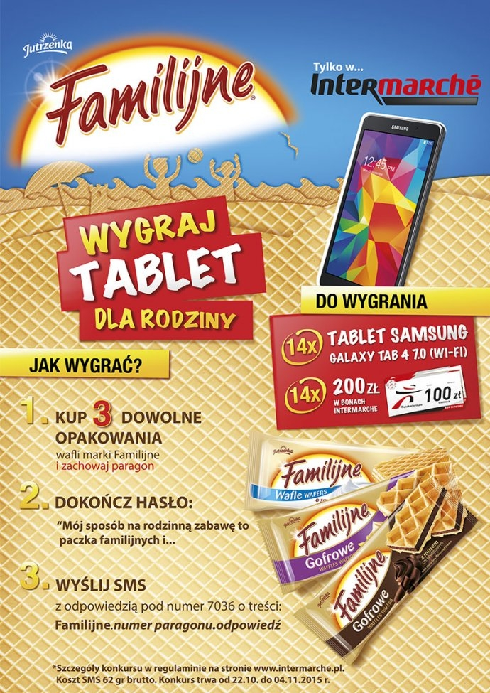 Kup w sklepach Intermarche 3 dowolne opakowania wafli marki Familijne i zachowaj paragon. Dokończ hasło: "Mój sposób na rodzinną zabawę to paczka familijnych i ..." i wygrywaj.