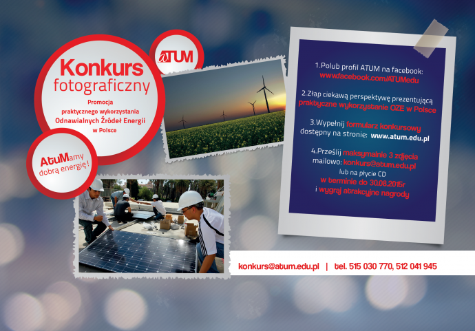 Prześlij maks. 3 fotografie mailowo na konkurs@atum.edu.pl lub na płycie CD na adres firmy ATUM sp. z.o.o z dopiskiem KONKURS OZE