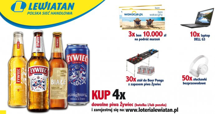 - zakupić cztery dowolne piwa Żywiec o dowolnej pojemności, zarówno w butelce jak i w puszce w sklepach sieci Lewiatan,