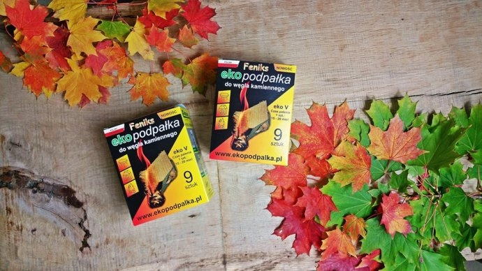 dwa opakowania naszego najnowszego produktu: Ekopodpałka do węgla kamiennego 9 szt, która jest bezpieczna w użyciu, nietoksyczna i w 100% naturalna !