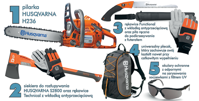 2. siekiera do rozłupywania HUSQVARNA S2800 oraz rękawice Technical z wkładką antyprzecięciową