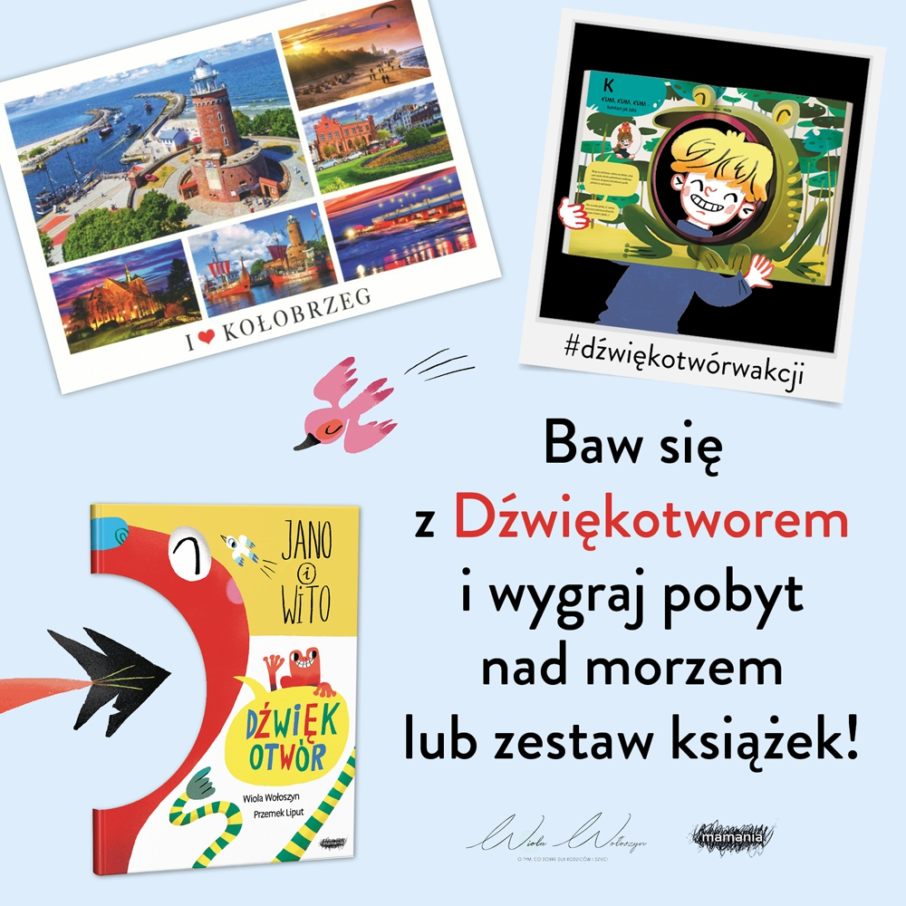 Wystarczy, że na swoim publicznym profilu udostępnicie filmik lub rolkę przedstawiającą zabawę z książką "Dźwiękotwór" i oznaczycie @wydawnictwomamania @matkawariatkapl oraz dodacie hashtag #dźwiękotwórwakcji