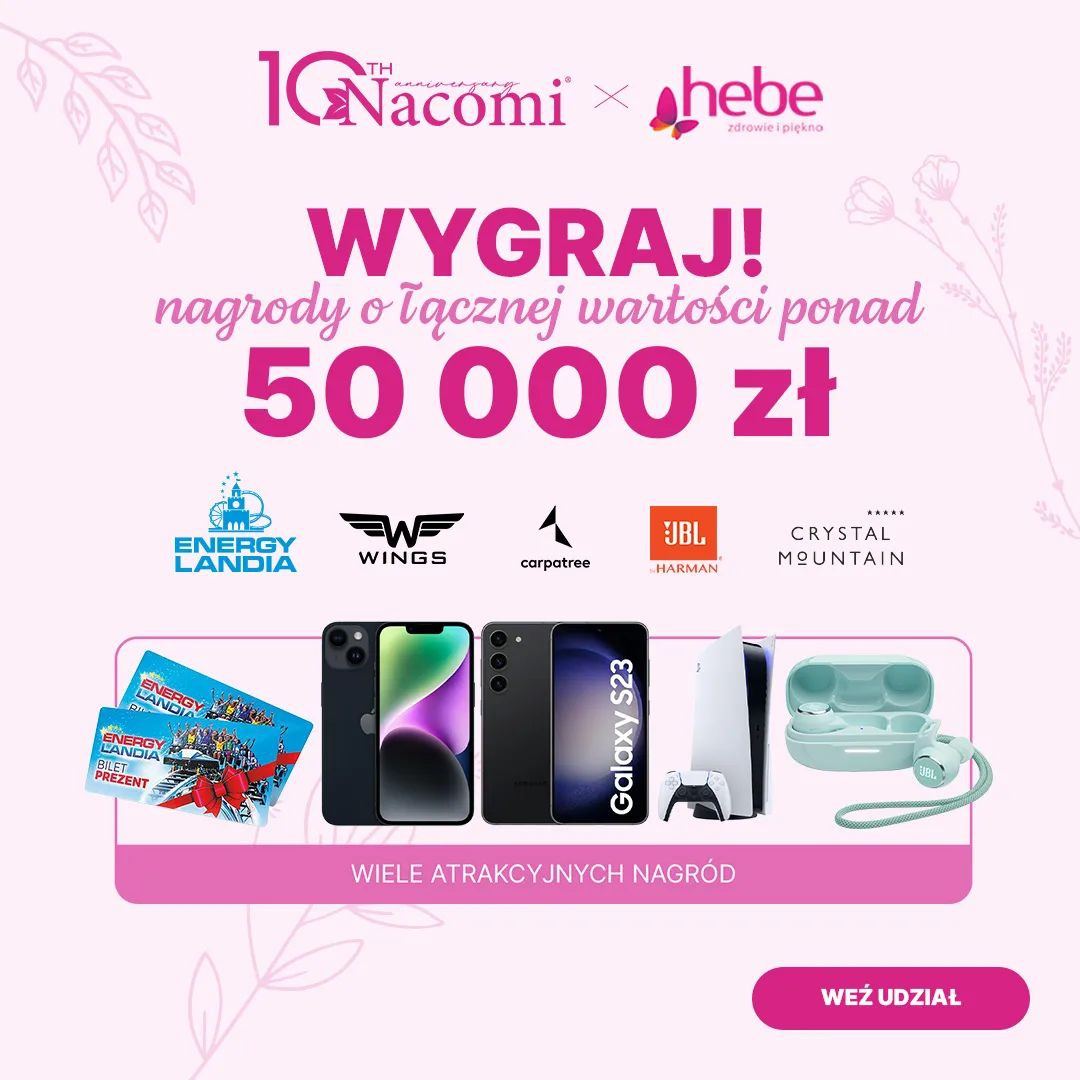 - 10x nagroda XI stopnia: zestaw kosmetyków Nacomi o wartości 361 zł brutto