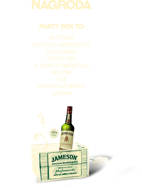 Warunkiem wzięcia udziału w konkursie jest dokonanie zakupu dowolnego Jamesona i zachowanie paragonu. Następnie należy wypełnić formularz na stronie jameson25.pl wpisując m.in. swoje dane oraz odpowiedź na pytanie "Czym dla Ciebie jest 25-ta godzina?".