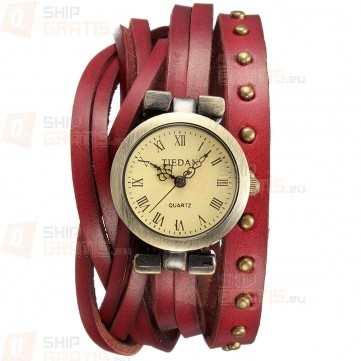 5x Vintage retro zegarek - pasek ze sztucznej skóry - czerwony