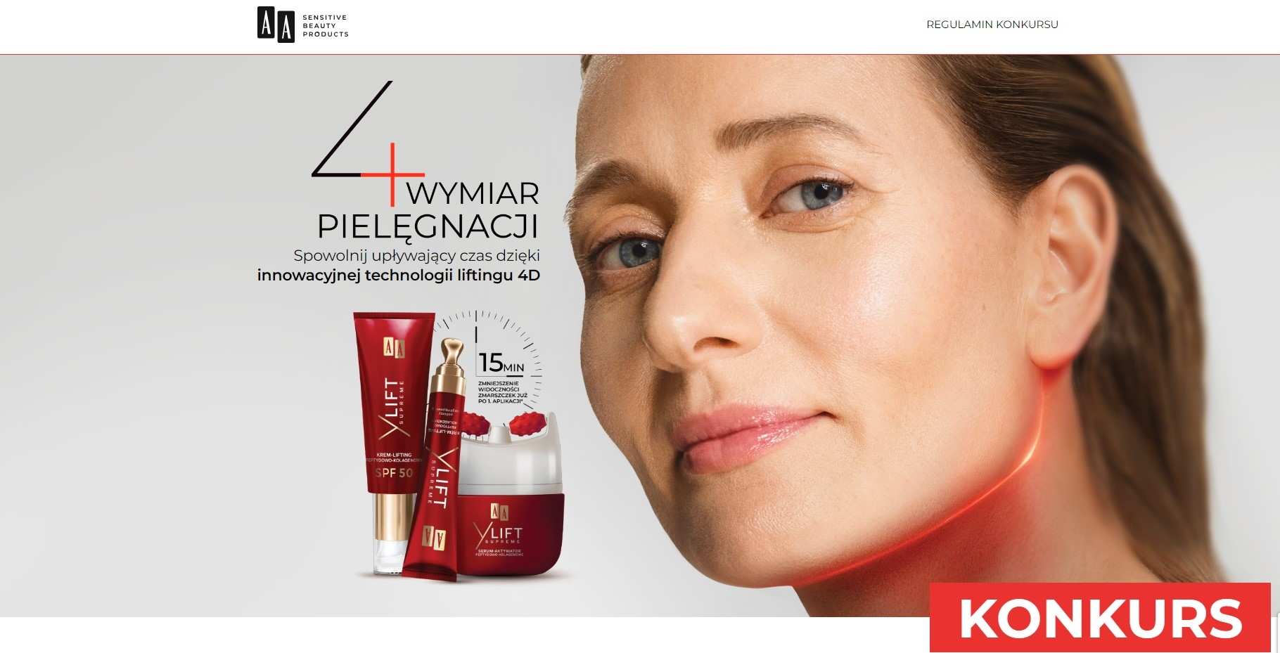 20 zestawów o łącznej wartości 150 zł, zawierającego dwuosobowe zaproszenie do multikina) oraz zestaw produktów AA składający się z: AA Y LIFT SUPREME KREMLIFTING PEPTYDOWO-KOLAGENOWY 50 ml, AA Y LIFT SUPREME SERUM-AKTYWATOR, PEPETYDOWO-KOLAGENOWE 40 ml, AA Y LIFT SUPREME KREM-LIFTING