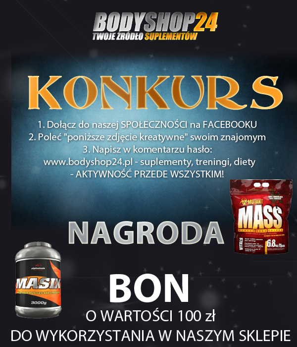 - W komentarzu umieść hasło : www.bodyshop24.pl - suplementy, treningi, diety - AKTYWNOŚĆ PRZEDE WSZYSTKIM!
