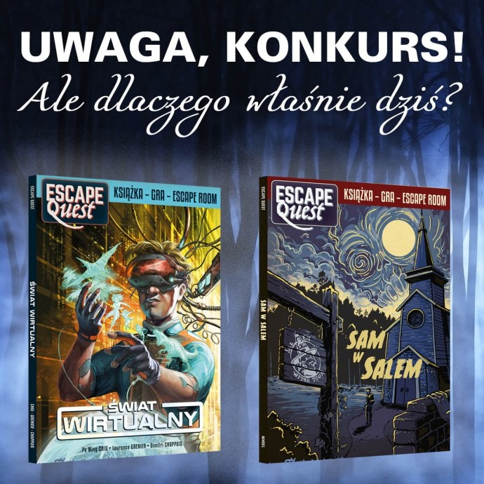 Albo po prostu napiszcie dlaczego to właśnie do Was powinny powędrować nowości z serii niezwykłych książkogier od wydawnictwa Egmont: „Sam w Salem. Escape Quest” oraz „Świat wirtualny. Escape Quest”.