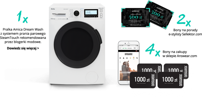 1x Pralka Amica Dream Wash z systemem prania parowego SteamTouch