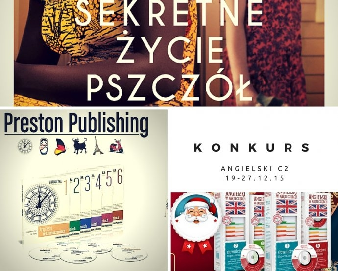 książka "Sekretne życie pszczół" oraz materiały do nauki języka angielskiego: podręcznik "W tłumaczeniach" (dowolny poziom) oraz fiszki "W karteczkach" (dowolny poziom)