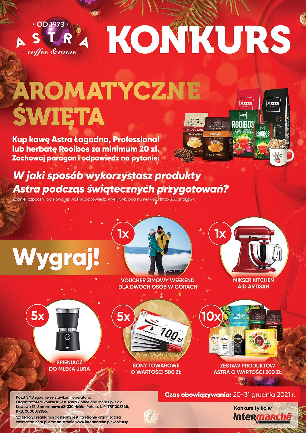 - Kup w Intermarche kawę Astra Łagodna, kawę Professional i/lub herbatę „Rooibos” za minimum 20 zł i zachowaj paragon