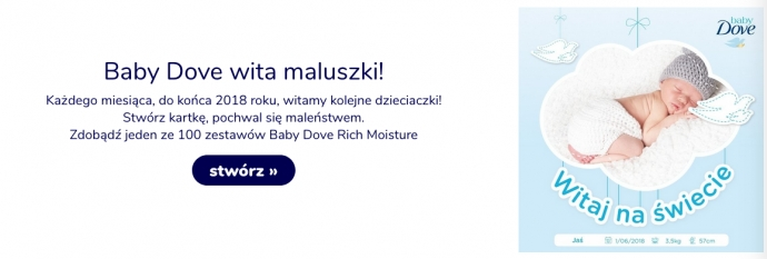 Stwórz kartkę, pochwal się maleństwem i napisz kilka słów. 100 zdjęć, które pojawią w galerii zostanie nagrodzonych zestawem Baby Dove Rich Moisture. Kartkę możecie również wysłać najbliższym, wydrukować, czy zmieścić na FB. Zapraszamy:)