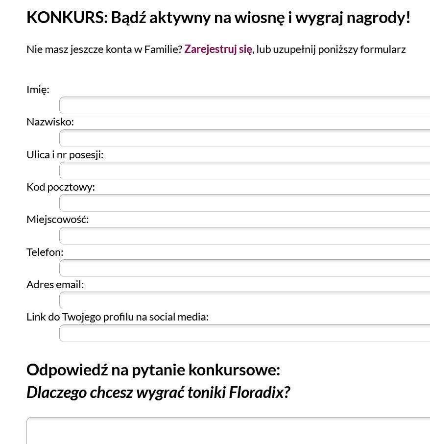 03.04.2025 09:40:17Konkurs polega na przesłaniu odpowiedzi w formie pisemnej na konkursowe pytanie otwarte „Dlaczego chcesz wygrać toniki Floradix?"