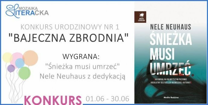 Osoba, której odpowiedź zostanie uznana za najciekawszą, otrzyma egzemplarz powieści „Śnieżka musi umrzeć” ze specjalną zwycięską dedykacją od Nele Neuhaus, a trzy kolejne najbardziej kreatywne odpowiedzi zostaną wyróżnione kartką ze zdjęciem i autografem niemieckiej pisarki.