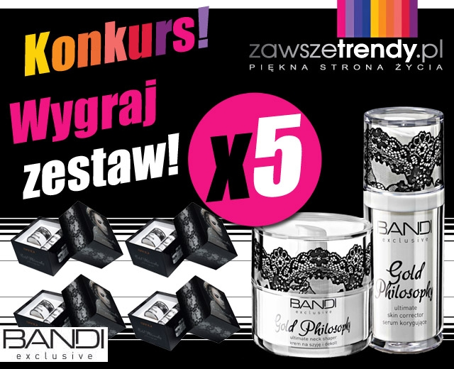 Weź udział w naszym konkursie "Bandi rozdaje prezenty!" i wygraj kosmetyki z luksusowej serii Gold Philosophy! Zestaw w ozdobnym pudełku zawiera serum korygujące do twarzy oraz krem na szyję i dekolt.