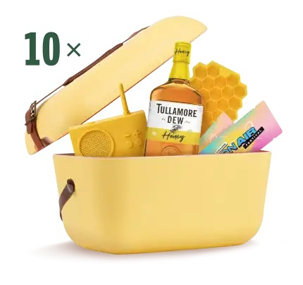 - 10 Nagród I stopnia będące BEEfor boxami w skład których wchodzą: podwójne bilety na festiwal On Air (538zł), wariant Tullamore D.E.W Honey(64,99zł)., dwie szklanki, 16,78) lodówka marki Polarbox(280zł), radio Tykho 3 (284,01zł) oraz foremki na kostki do lodu (33zł)