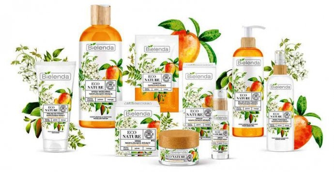 5x zestaw kosmetyków Bielenda Eco Nature, w skład którego wchodzi 12 produktów do pielęgnacji twarzy i ciała: masło, mleczko do kąpieli i pod prysznic, kostka peelingująca, peeling w doypacku, krem, serum, maseczka, peeling, żel micelarny, płyn micelarny, woda tonizująca.