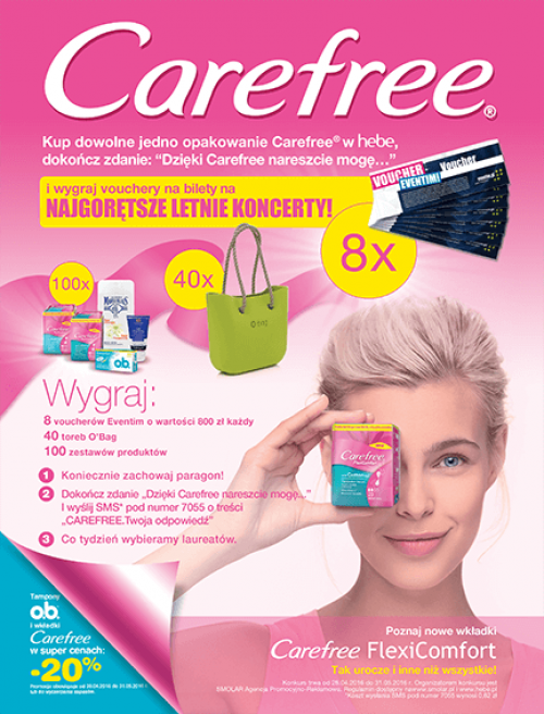 Należy dokonać zakupu promocyjnego (dowolny produkt marki Carefree) i zachować oryginał dowód zakupu.