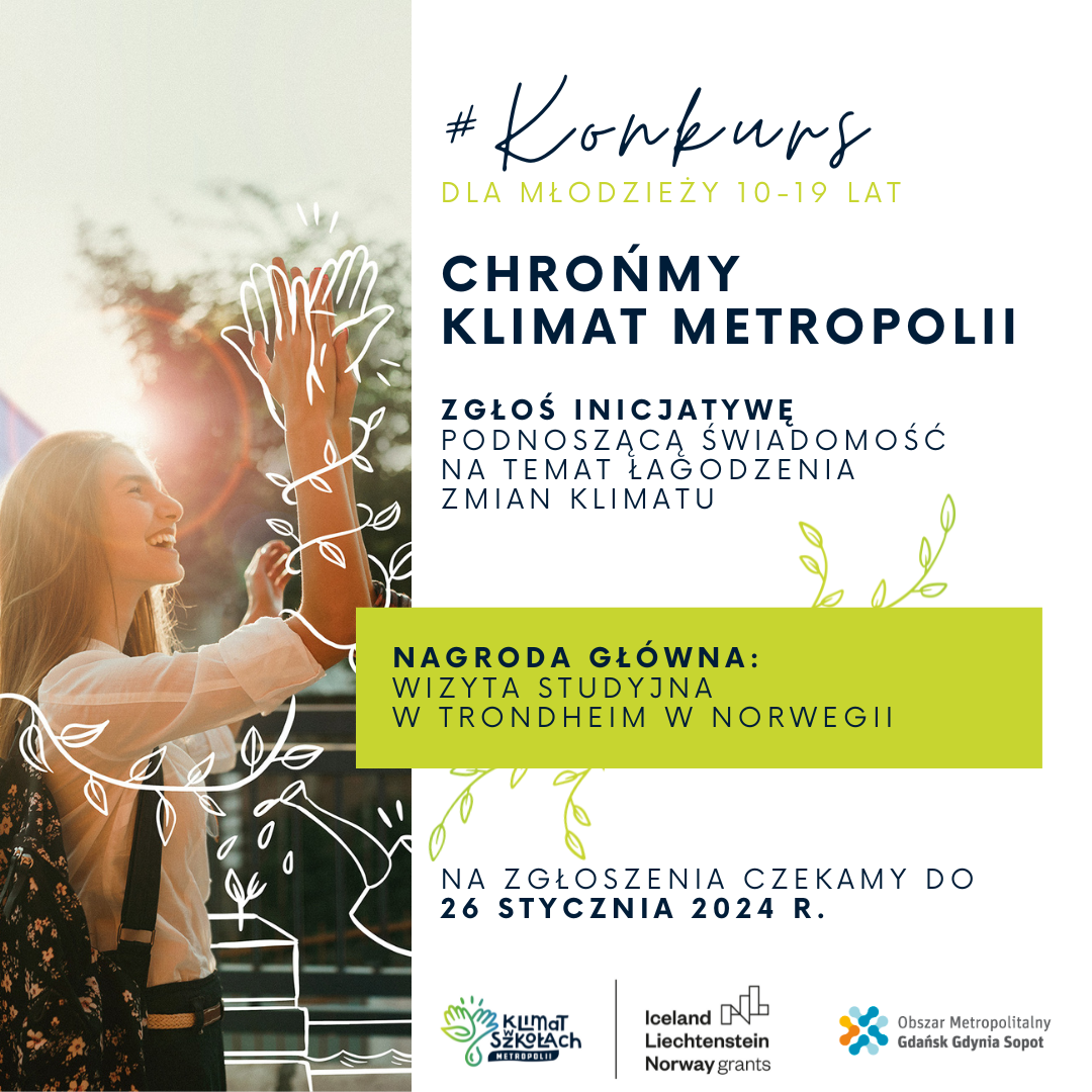 Bliskie są Ci tematy związane z ochroną środowiska? Masz pomysł jak przeciwdziałać skutkom zmian klimatu oraz zachęcić do takich działań znajomych, rodzinę, sąsiadów i lokalne społeczności? Zadbaj o dobry klimat zgłaszając inicjatywę do konkursu i wygraj trzydniowy wyjazd do Norwegii!Jak to zrobić
